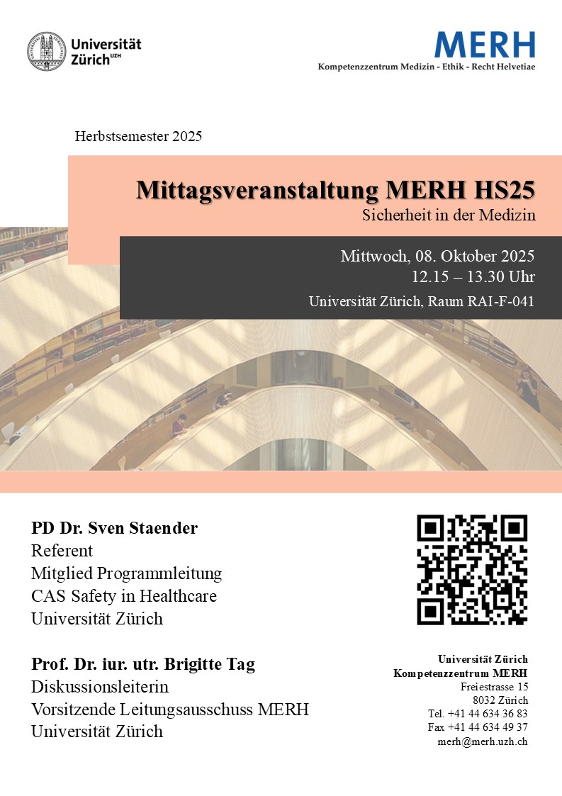 Herr PD Dr. Sven Staender wird uns spannende Einblicke zum Thema Sicherheit in der Medizin geben